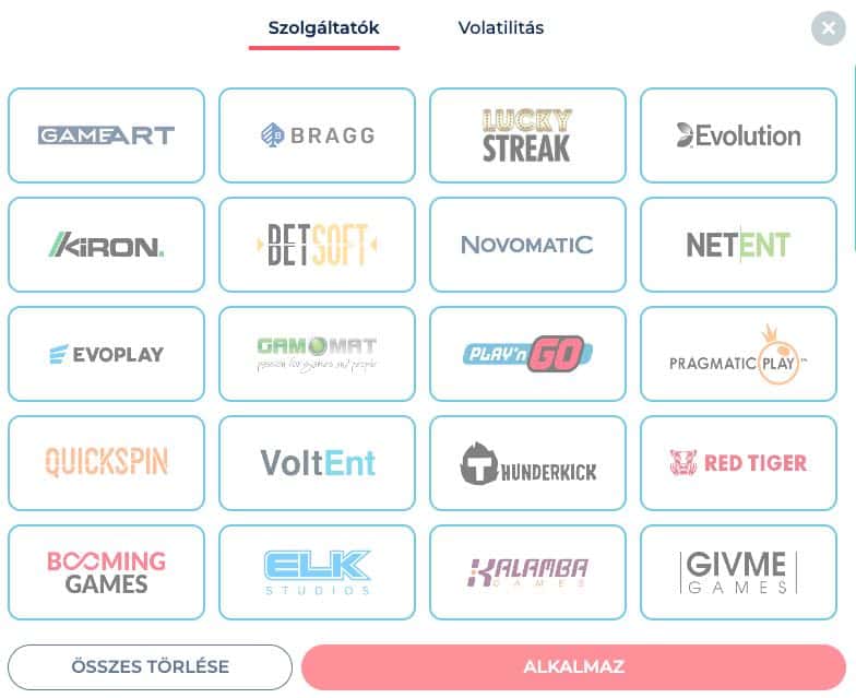 Játéktípusok és szolgáltatók